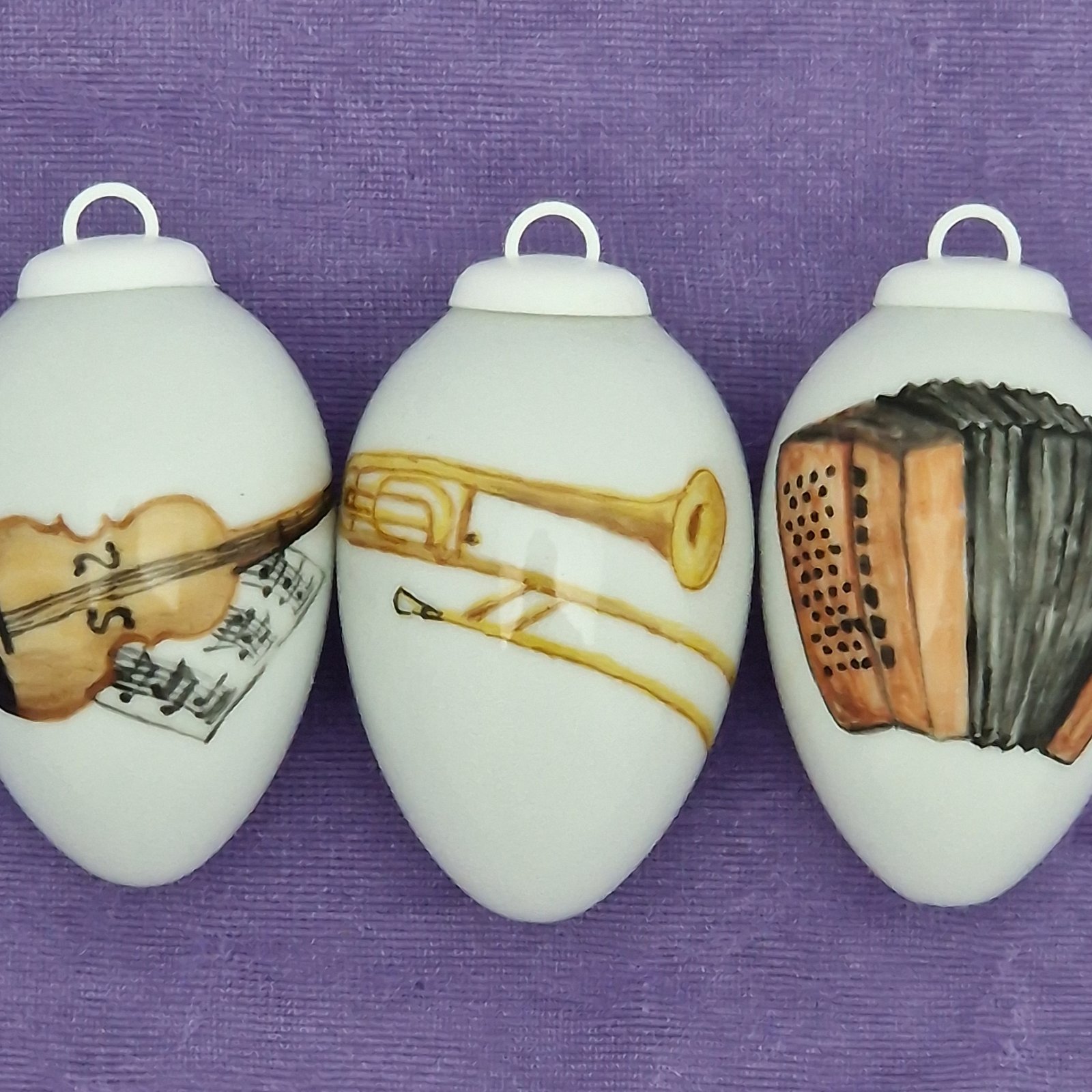 Leichte Porzellaneier zum Hängen, beidseitig mit Blumen bemalt.